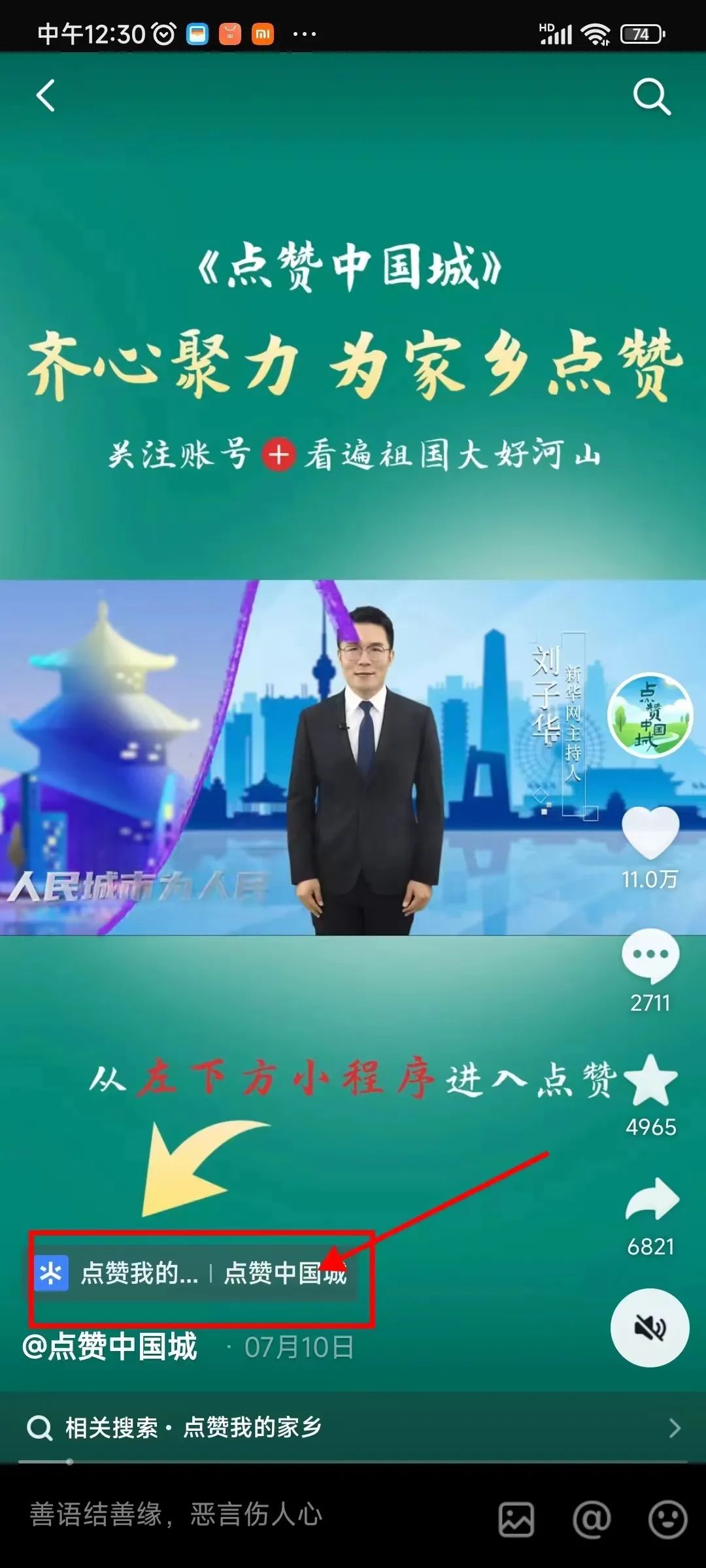 “点赞中国城”是新华网主导推出的凝聚民心、宣传城市的公益活动,我市作为全省首批地市之一受邀参加此次活动,请大家积极进行点赞,用指尖传递团结的力量,掀起热爱家乡、点赞家乡的高潮。一、点赞工作流程