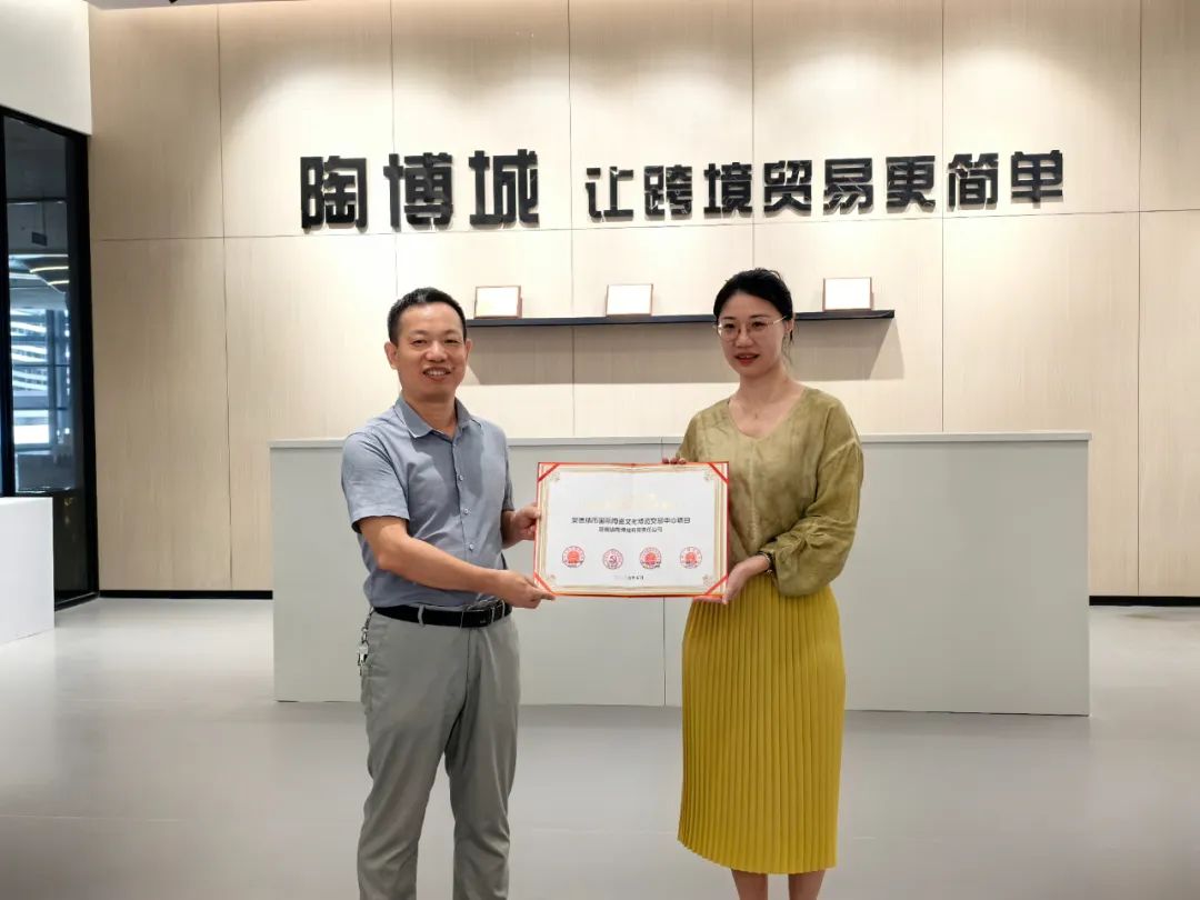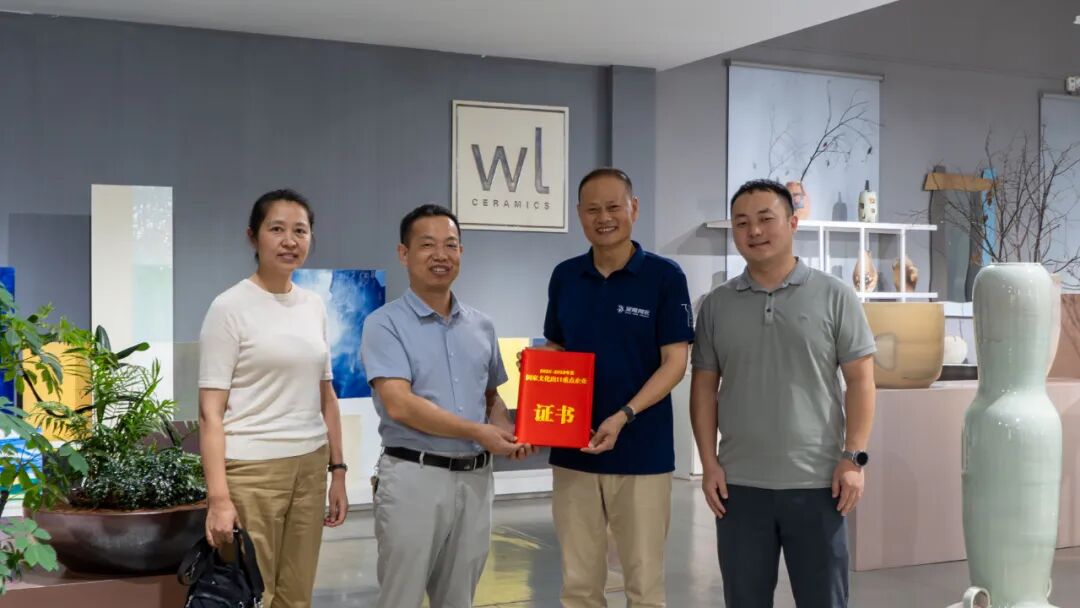 7月9日,景德镇市商务局与昌南新区共同赴陶博城和望龙陶瓷走访调研,和企业交流探讨通过陶瓷文化产品出海带动中华文化“走出去”的新路径、好办法,并现场举行了证书颁发仪式,将这份凝聚着国家认可与期许的证书郑重颁授给了获评企业。