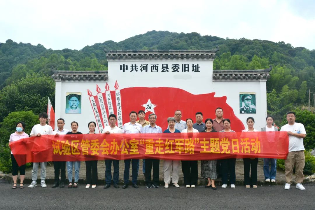 为庆祝中国共产党成立102周年,激励引导全体干部职工铭记光辉历史,赓续红色精神,激发奋进力量。6月30日下午,国家试验区管委会办公室、发展服务中心组织全体党员赴浮梁县蛟潭镇胡宅琅溪村开展“七一”主题党日活动,重走红军路,接受红色教育,感悟共产党人的初心使命。