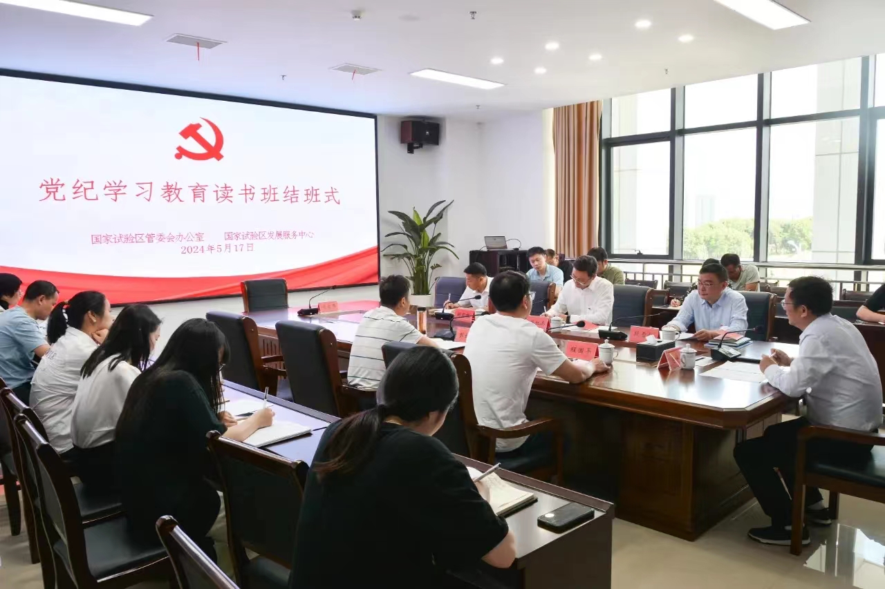 结班式上,与会领导围绕前期学习的《中国共产党纪律处分条例》,紧扣党的政治纪律、组织纪律、廉洁纪律、群众纪律、工作纪律、生活纪律等展开研讨交流。国家试验区管委会办公室机关党支部书记、试验区发展服务中心办公室负责人2位党员代表围绕读书班主题,结合工作实际和学习体会进行了分享交流。